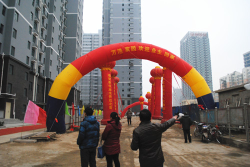 2012年12月16日上午,万浩家园二期1#楼、2#楼开始交房。现场彩旗飘扬、红毯端庄、一派喜气,彩虹拱门、灯笼立柱巍然屹立在大门与道路两旁,“万浩家园欢迎业主回家”、“恭贺各位业主乔迁之喜”、“臻美生活 幸福起航”……一个个条幅都包涵着万浩人对家乡父老的衷心祝福。