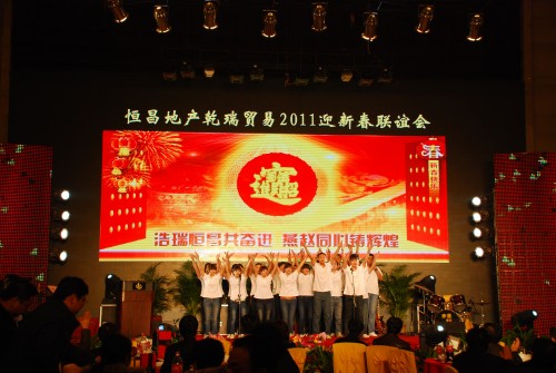 2011年1月16日,招商大酒店内掌声阵阵,笑语欢歌,化成了一片欢乐的海洋。恒昌地产领导及全体员工、乾瑞贸易领导及全体员工和社会各界关心支持本单位的领导们参加了以“浩瑞恒昌共奋进、燕赵同心铸辉煌”为主题的恒昌地产乾瑞贸易2011年迎新春联谊会。此次联谊会由恒昌地产和乾瑞贸易共同举办,旨在让大家欢聚一堂,共同分享2010年取得的成就,迎接2011年的美好辉煌。