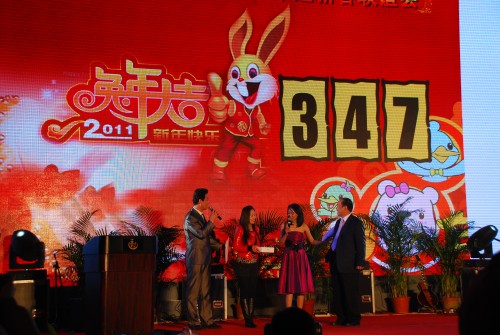 此时,冬季的古城被严寒包裹,却包裹不住嘉宾和员工们热情的心。随着恒昌地产董事长贾胜国宣布迎新春联谊会正式开始,台上台下掌声四起,欢呼阵阵。一段精彩的开场舞将场内的气氛调动起来,人们都在期待下个一精彩节目上演。先是美猴王闪亮登场,现场上妆的绝技让台下的观众啧啧称奇。恒昌地产的员工也不甘示弱,男声二重唱使现场气氛高涨,一段热辣的舞蹈更是将联谊会的气氛推向高潮。整场演出内容丰富多彩,形式多样,歌舞、曲艺、相声、书法、茶艺、乐器表演应有尽有,让观众们大饱眼福。联谊会上,公司还精心为现场观众准备了相机、手机、电脑等丰厚大奖。大家的兴致和激情在一次次的抽奖活动中被推向极致。最后,恒昌地产的20多名员工齐声合唱了《明天会更好》,预示着恒昌地产和乾瑞贸易在2011年的发展中会蒸蒸日上,取得更大的辉煌。