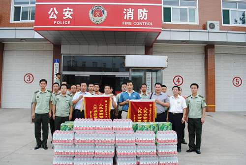 在“八一”建军节来临之际,8月1日上午,恒昌地产副总经理柳英民及公司其他领导来到邯郸市消防支队七中队,代表恒昌公司向广大消防官兵致以节日的问候,并为消防官兵献上锦旗和礼物,以表达我们的拥军之情。
