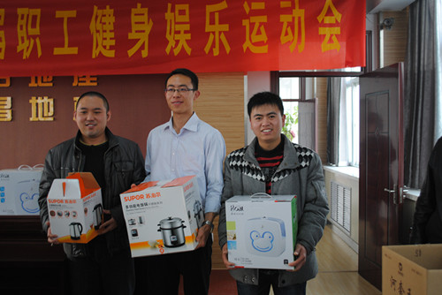 参赛者各个精神抖擞、信心十足。经过一番激烈的角逐后,上午的跳绳比赛决出了男女组冠、亚、季军。下午在跳棋、象棋比赛的循环赛中也决出了该项目的一、二、三名。在男子跳绳比赛中,孙悦一举夺冠,范红超、李霄宇分别获得亚军和季军;在女子跳绳比赛中,陶利娟夺冠、任培佩、张勇分别获得亚军和季军;在跳棋比赛中,冀媛媛、马艳、任培佩分别获得冠军、亚军和季军;在象棋比赛中,陈振获得冠军、杨晓云、宋超分别获得亚军和季军。比赛结束后,副总经理柳英民依次为获奖者颁奖,与其合影留念。整场比赛都洋溢着祥和、欢乐的气氛。羽毛球、兵乓球项目将于12月4日在专业体育馆进行,届时,运动员们一定会再接再厉,取得更佳成绩。