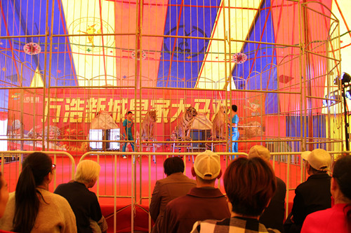 此次马戏团来邯郸肥乡进行表演,有创新的元素呈现,也有传统的节目表演,表演规格十分之高。一是,表演马戏的动物非常多,有狮虎争霸、猴子踩高、小狗钻圈、狗熊杂耍等等;二是,节目设置丰富,除了动物的马戏表演、让人叹为观止的杂技演出,还有现场抽奖环节;三是,经验丰富,技艺纯熟,把最原汁原味的表演呈现台上;四是,安全第一,在演出现场设置铁质舞台防护栏,让观众安全享受演出。在观赏演出之余,现已开放的景观示范区让到访的看房者亲身体验未来生活的美好环境。