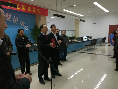 11月1日上午,邯郸市不动产统一登记首发仪式在不动产登记中心隆重举行。邯郸市委常委、副市长王进江为我市不动产登记中心进行了揭牌,并颁发了首批不动产权证书。